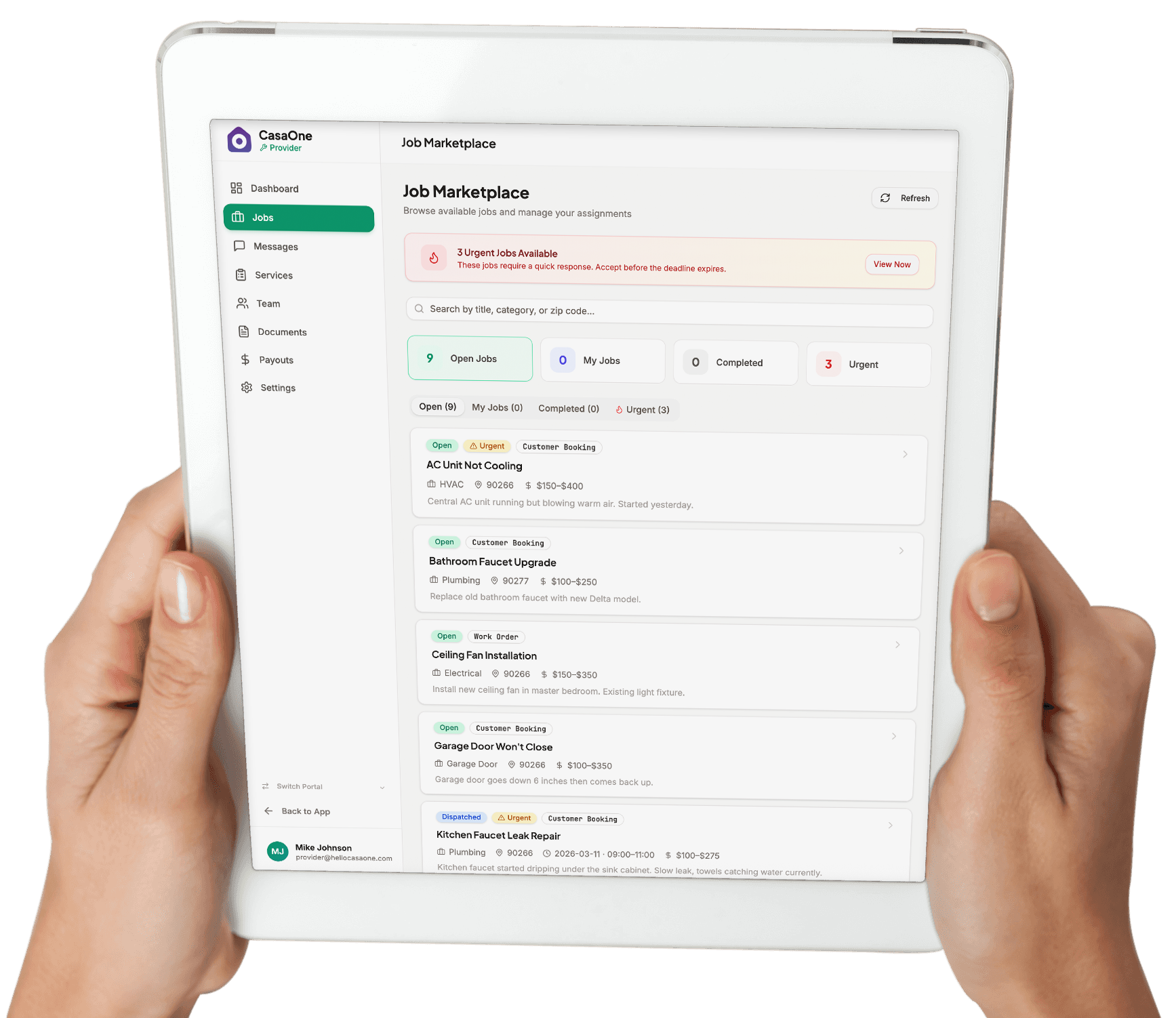 Once approved, you’ll start receiving service requests that match your skills.